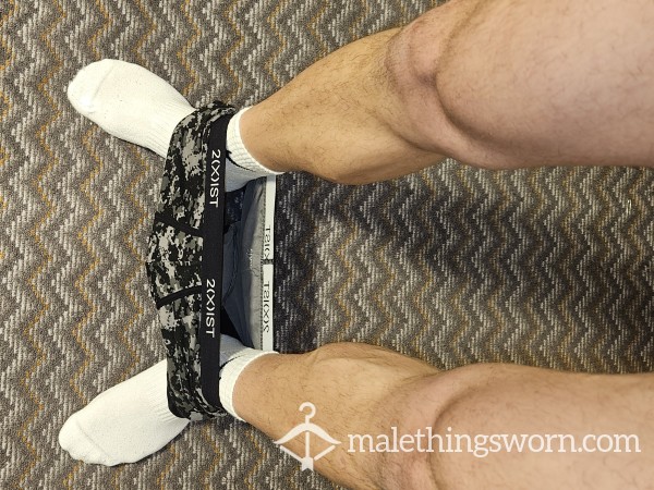 Tight well worn light blue TH underwear especially for my gym sessions and to hold my big package...