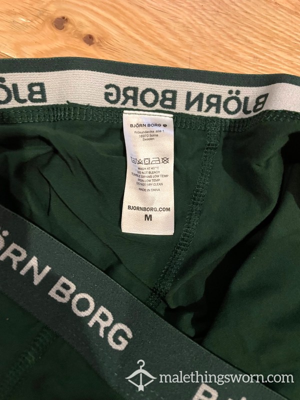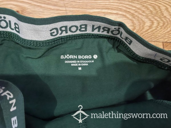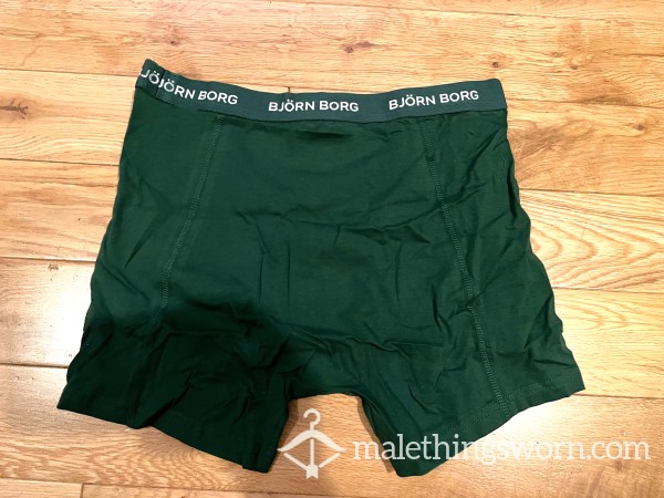 Men's Bjorn Borg Dark Green Boxer Shorts. Size M. I can wear them all day and night and during workouts and playtime and they get sweaty and man scented. Will wear them for 2 days straight or longer if you want, may even have a little pre-c*m in them. If you want I can c*m in them if you want for a little extra. Just message me with requests. Free UK postage. International postage is extra.