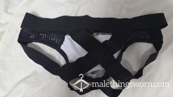 Black and Patterned Barcode Jockstrap Size: XL, Well worn Postage included in Price, extra cost for international