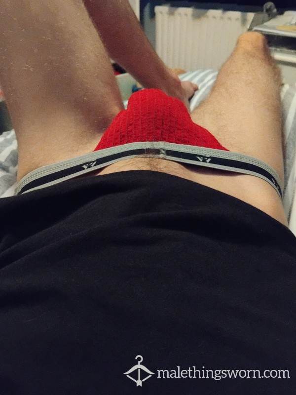 Used/worn Addicted Red jockstrap. Worn to work and gym for multiple days. Could add some c*m of you...