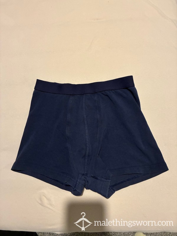 These are some well-worn blue boxers size S. I will wear them for 2 days without showering and once during sports. Contact me if you want any other add-ons!