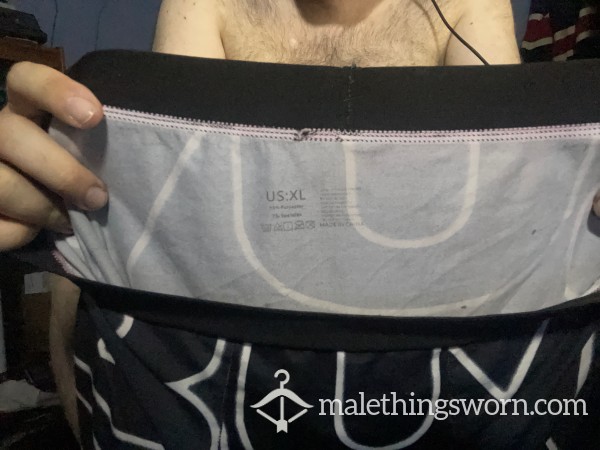 Used pair of black Calvin Klein boxers (XL). Includes a day of wear to the gym and c*m...