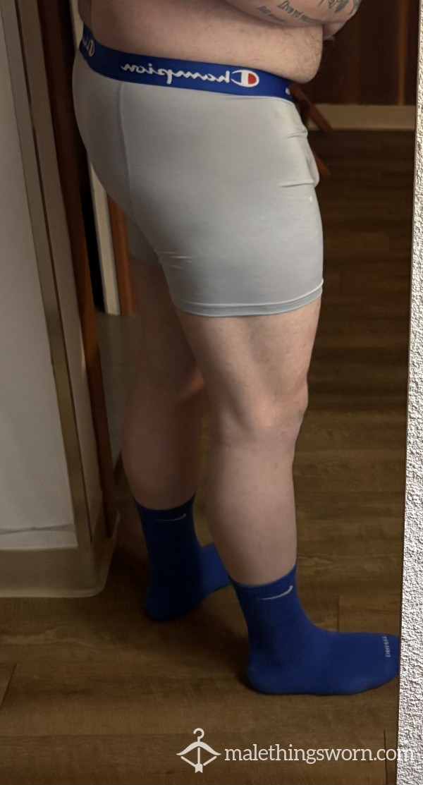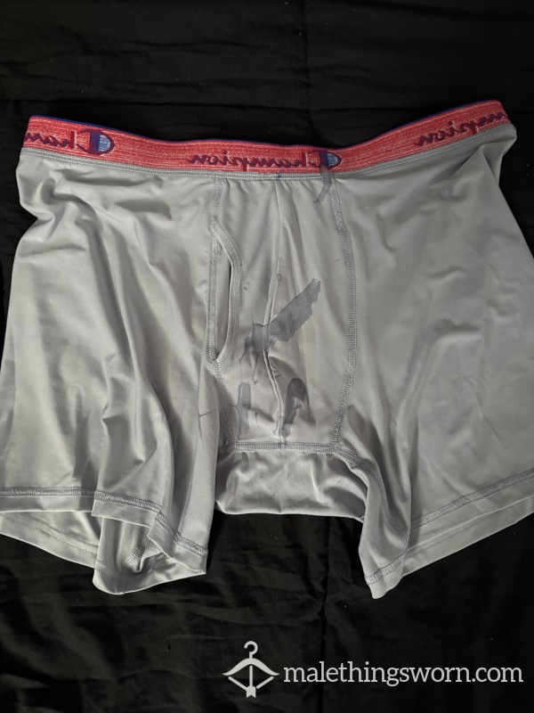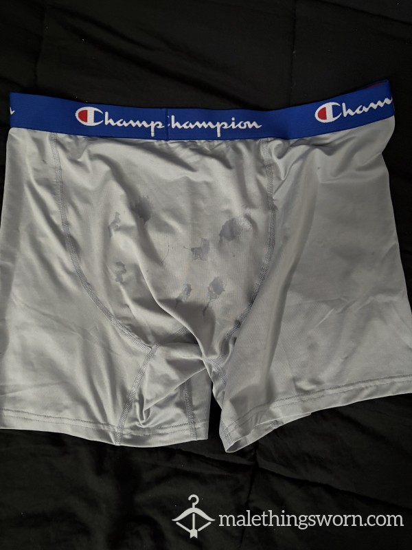 Worn 4 days Champion Boxer Briefs with everything that comes with (c*m, sc*m, etc…). You can use extra if you want me to wear them on hockey practice or more. Contact me for request.