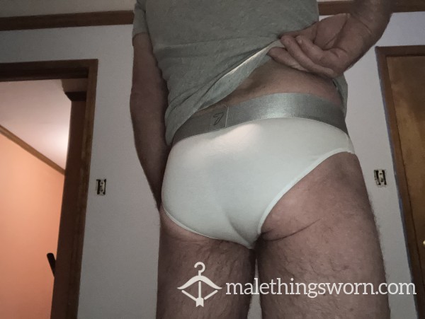 Well worn pair of club 7 briefs. Color white. Size small. Can be worn before shipping or other requests