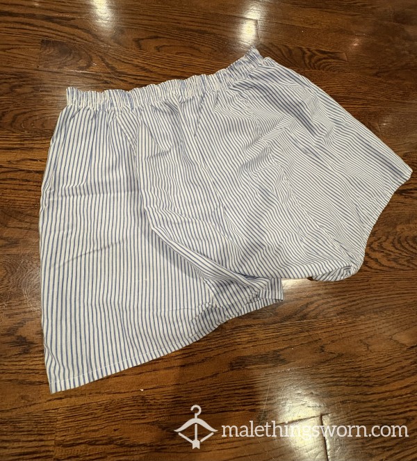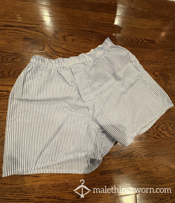 CHECKED BLUE PRESPUNKED BOXER TRUNKS 🩲 💪🏽💧🩲😜 Size L 💪🏽🍆💧👍🏽 tight and snug of…Sweated already with real prec*m incident… Gym...