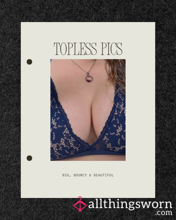 Casual pics of me topless in my new red thong and nude, laying on a red blanket. I...