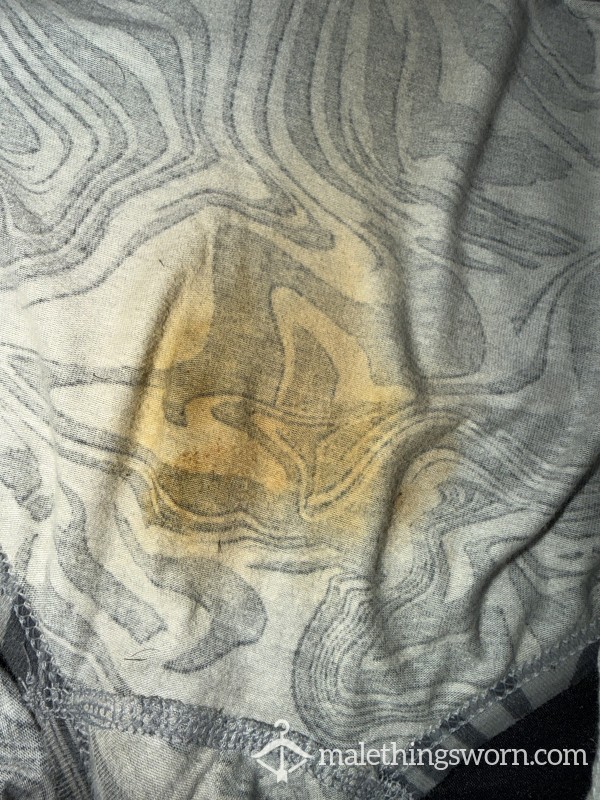 The crotch is heavily stained with deep yellow ball sweat marks, pi*s dribble, and thick musk crust that’s built up nice and ripe. You can see the discoloration clear as day in the pics, that’s real alpha scent baked in. The fabric still holds that strong, sharp, masculine funk: sweaty nuts, a**, and pure man musk that’ll hit you straight in the face when you open the bag.