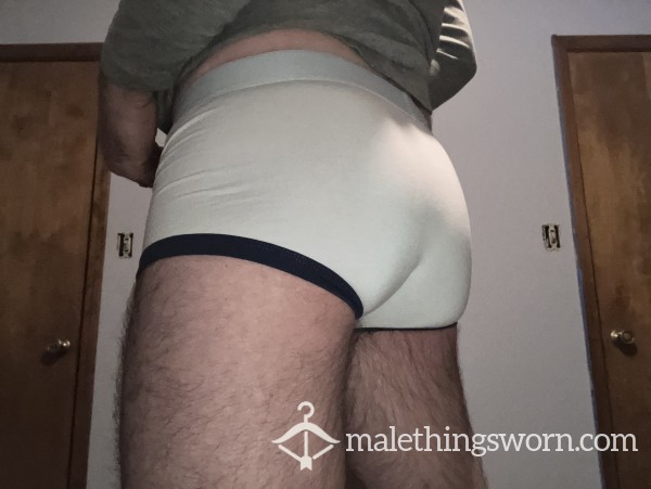 Mens used black boxers for one day. Used by Daddy and mommy to mop up after a very steam...