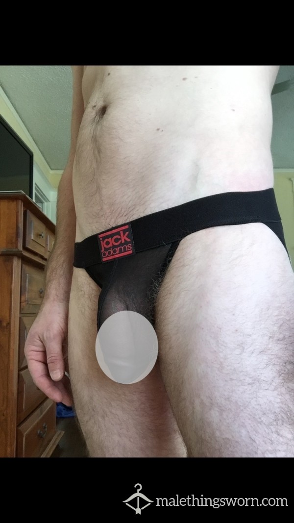 Well worn Jack Adams jockstrap. Mesh. Medium. Can be worn before shipping. Additional requests, just ask.
