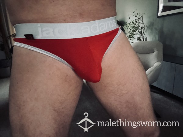 Buy these hot red briefs worn for days by a hairy alpha male and take your fantasy to...