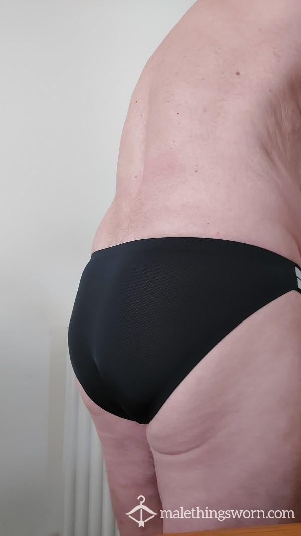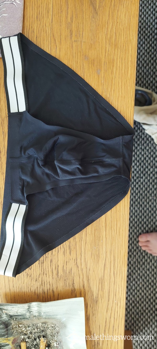 Sweat drenched from a hard run, these briefs are soaked in musky runner sweat with the pouch slick...