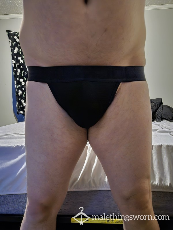 Old black Calvins, stretched and torn from heaps of wear. Loose around the arse from hard gym sessions,...