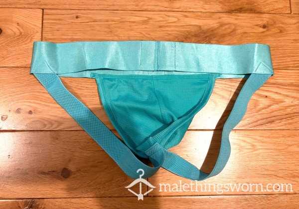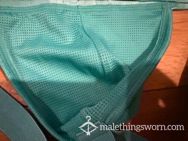 Jockmail s**y tight fitting neon aqua Jockstrap Size M, Perfectly designed to show off your package and super comfortable too! I can wear it all day and night and during workouts and playtime and they get sweaty and man scented. Will wear it for 2 days straight or longer if you want, may even have a little pre-c*m in them. If you want I can c*m in it if you want for a little extra. Just message me with requests. Free UK postage. International postage is extra.