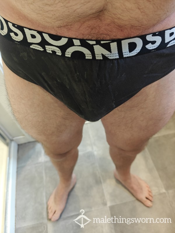 c*m and sweat stained, worn for the 3 filthy, stinky days...