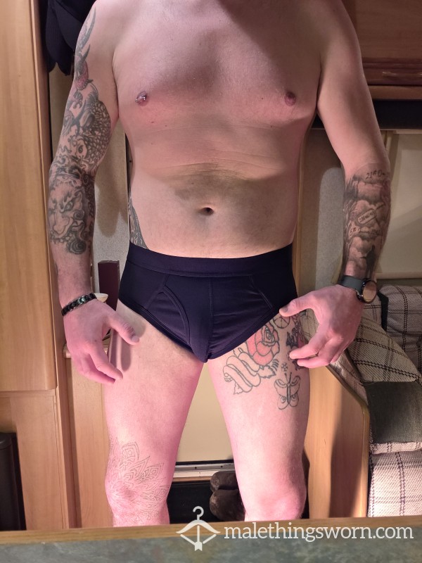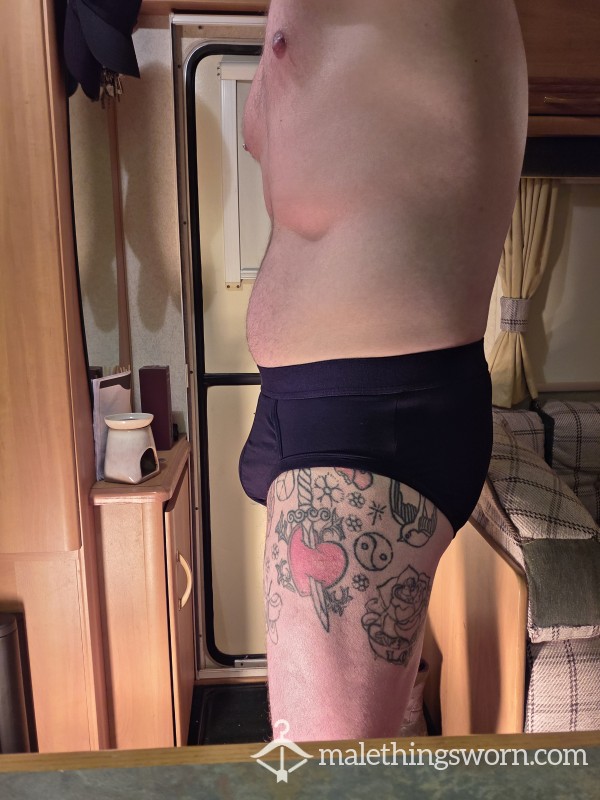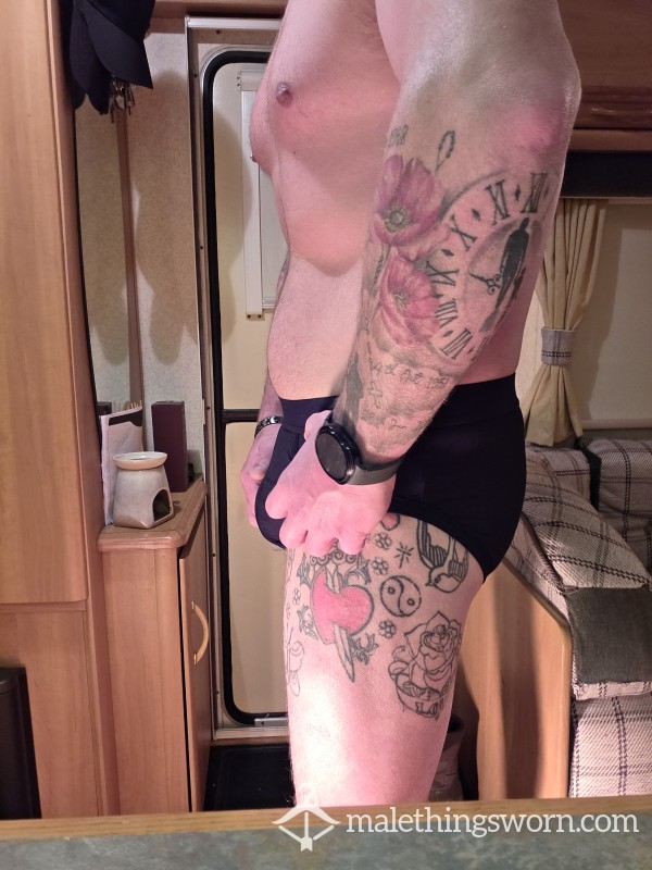 Black banded briefs size L includes 1 day wear + 1 pic. Extra days wear + pic is £5 per day and c*m loads are £5 per load
