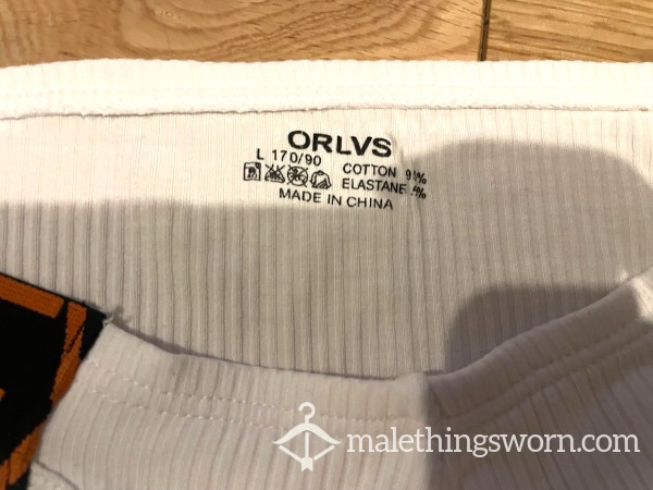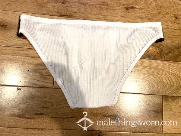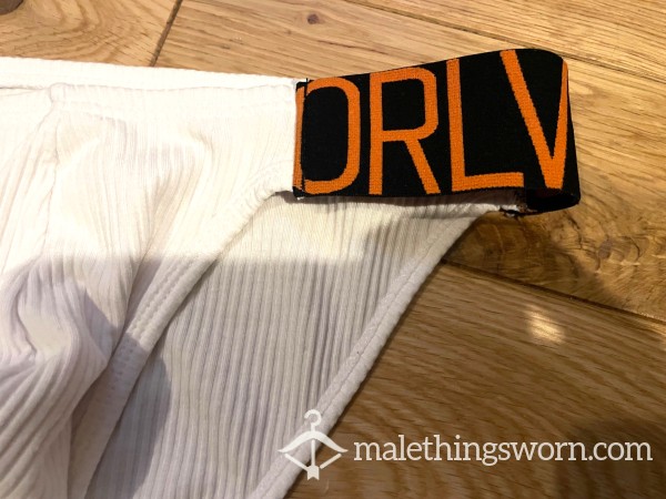 Men's Orlvs Menswear Ribbed White Tanga Briefs with logo waistband sides. Size L. I can wear them all day and night and during workouts and playtime and they get sweaty and man scented. Will wear them for 2 days and nights straight or longer if you want, may even have a little pre-c*m in them. If you want I can c*m in them if you want for a little extra. Just message me with requests. Free UK postage, International postage is extra