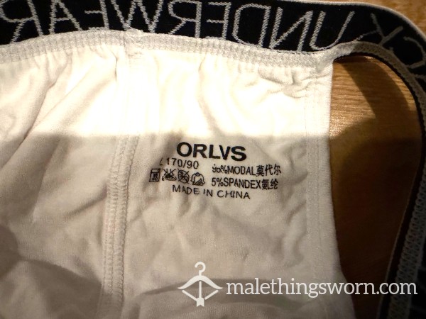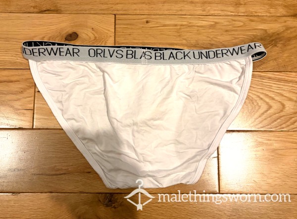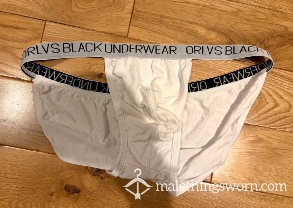 Men's Orlvs Menswear White Tanga Briefs with logo waistband sides. Size L. I can wear them all day and night and during workouts and playtime and they get sweaty and man scented. Will wear them for 2 days and nights straight or longer if you want, may even have a little pre-c*m in them. If you want I can c*m in them if you want for a little extra. Just message me with requests. Free UK postage, International postage is extra.