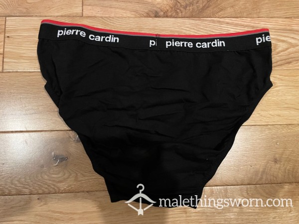 Pierre Cardin Men's Black Hip Briefs (L). I can wear them all day and night and during workouts and playtime and they get sweaty and man scented. Will wear them for 2 days straight or longer if you want, may even have a little pre-c*m in them. If you want I can c*m in them if you want for a little extra. Just message me with requests. Free UK postage. International postage is extra.