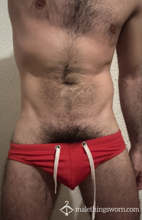 Buy these hot red briefs worn for days by a hairy alpha male and take your fantasy to the next level. Enjoy this underwear with the scent of authentic hairy man and feel what it's like to wear this garment like a real masculine man.