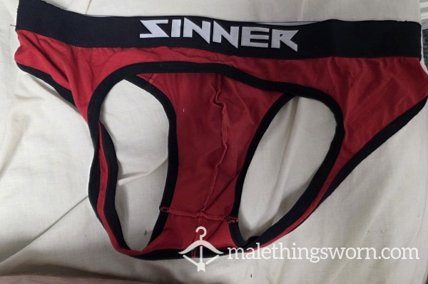 Red Sinner Jockstrap Size: XXL, Well worn Postage included in Price, extra cost for international
