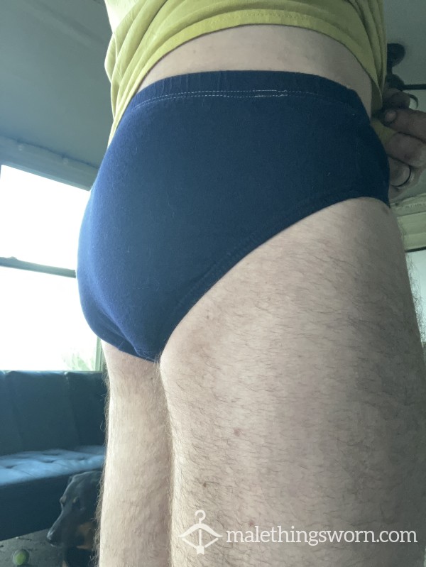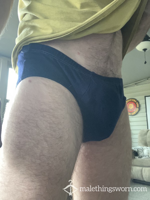 Well worn pair of Reebok bikini briefs. Size small. Dark blue. Requests?