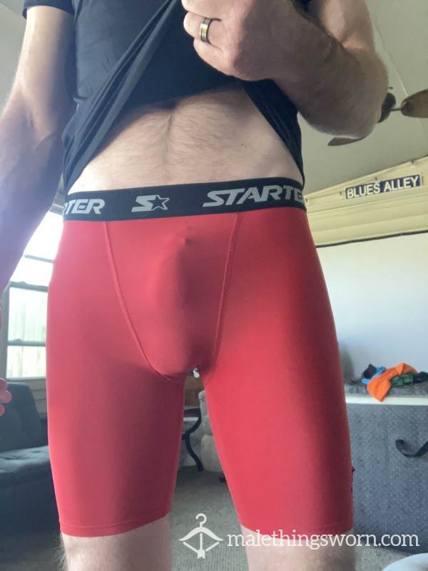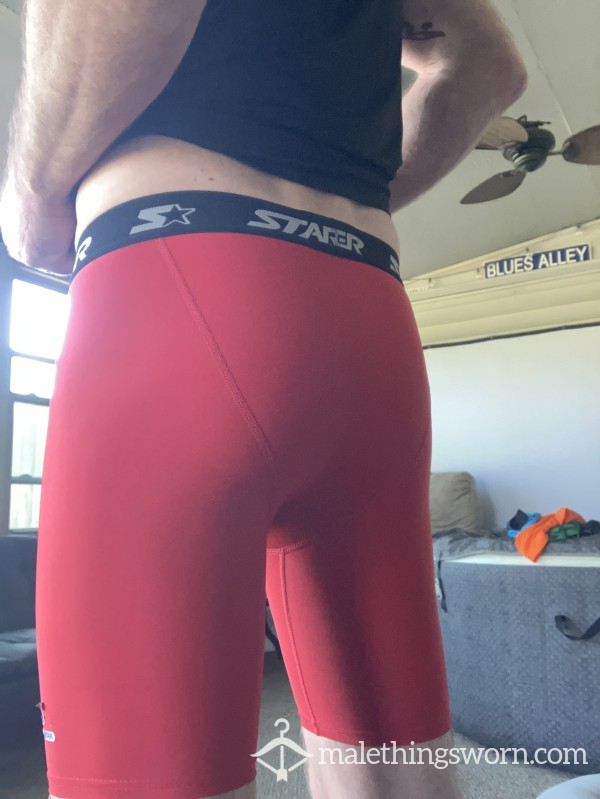 Well used men’s small compression shorts. Started brand. Requests?