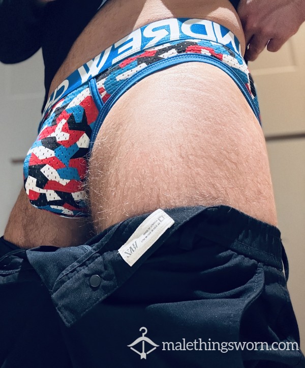 One black and red jock and one pair of white DKNY briefs. These have been worn and used💦...