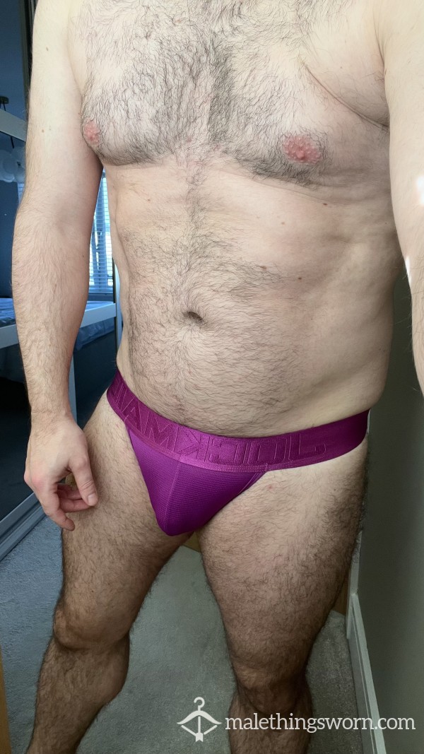 Sweaty purple Jockmail Jock All items are worn for 2 full days & a sweaty spin cla**. Love to custom your order with extra wear, sweat or a huge Scottish load 💦 Happy to add in an extra vile or 2 of fresh sweat or load to further customise your order 💦