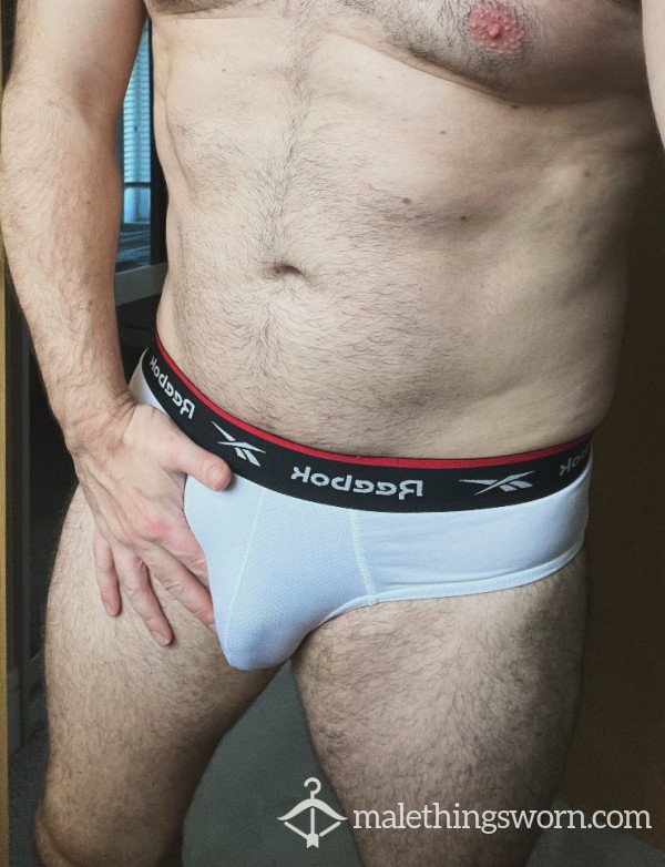 Worn sweaty white reebok briefs All items are worn for 2 full days & a sweaty spin cla**. Love to custom your order with extra wear, sweat or a huge Scottish load ๐ฆ Happy to add in an extra vile or 2 of fresh sweat or load to further customise your order ๐ฆ