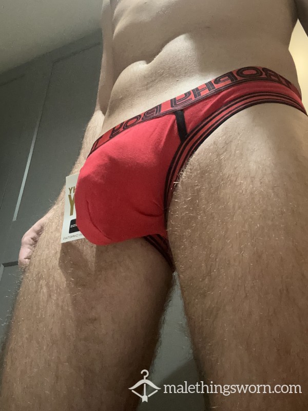 Tight red AC underwear worn out by me and waiting to be customized for the next owner Size: M