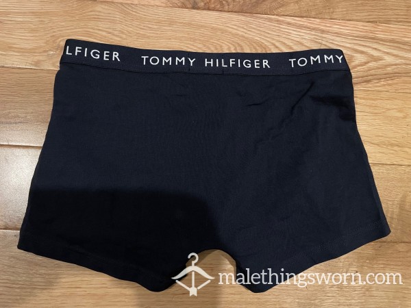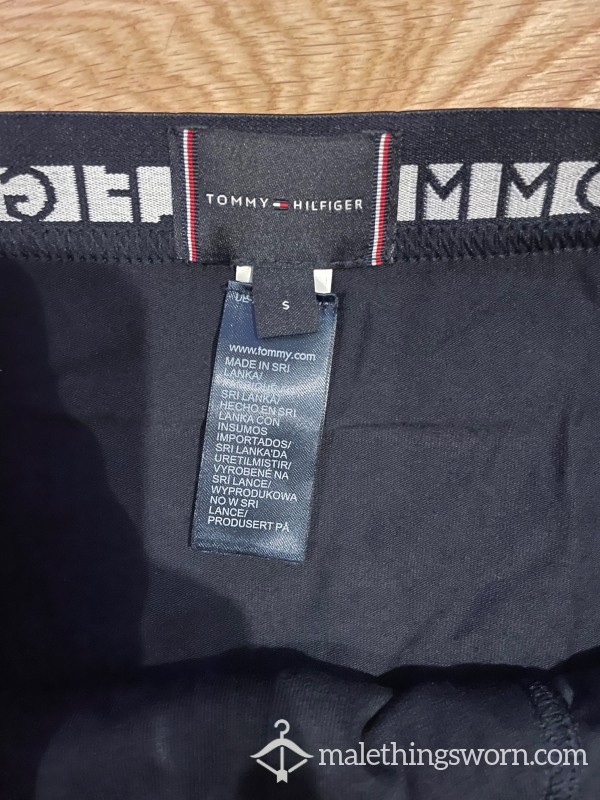 Men's Tommy Hilfiger black tight fitting Boxer Shorts (S), with Black waistband. These ones really show up the c*m stains! I can wear them all day and night and during workouts and playtime and they get sweaty and man scented. Will wear them for 2 days and nights straight or longer if you want, may even have a little pre-c*m in them. If you want I can c*m in them if you want for a little extra. Just message me with requests. Free UK postage. International postage is extra.