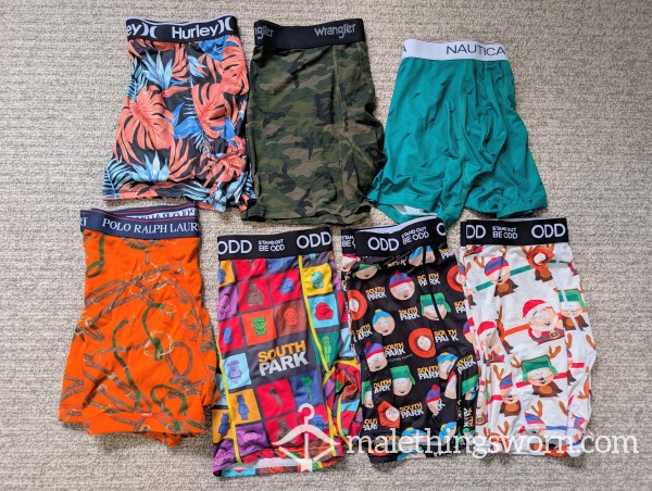 This is the other half of nearly all of the boxer briefs I own. Pick one or more pairs and I'll wear them for 3 days each. I will wear them all day and night (gym sessions included), and send you daily photos. Longer wear is possible, as are other customizations.