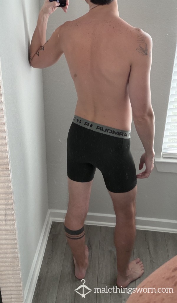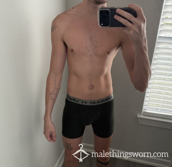 Post-training black FCUK underwear. Worn for 24 hours and during heavy cardio and weights sesh.