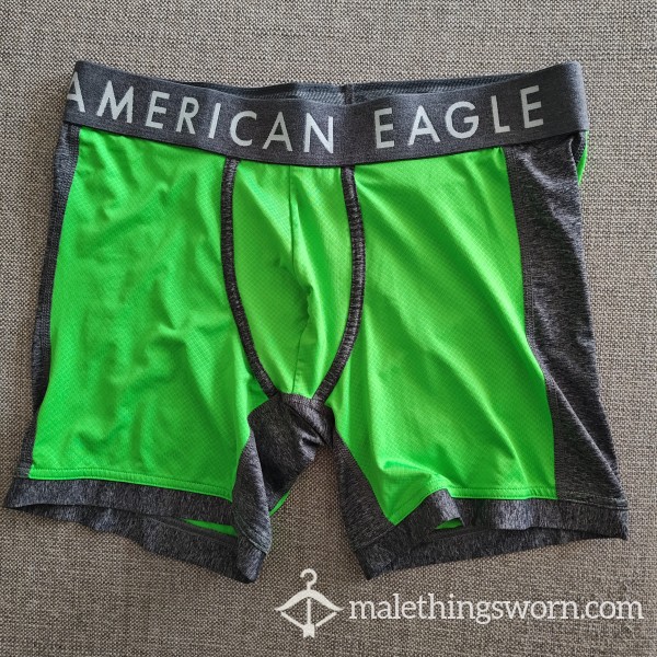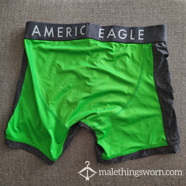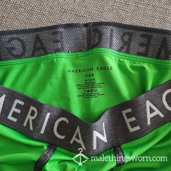 Neon green American Eagle brand boxerbriefs in Size M. In great condition and come freshly laundered unless you add upgrades for days worn or loads added.