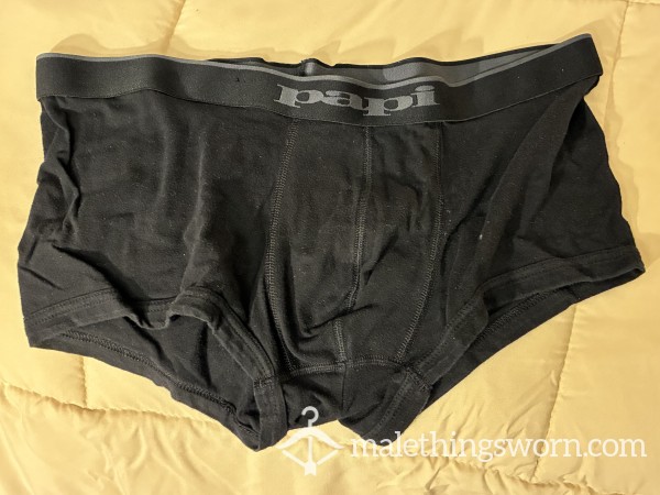 BLACK ELASTANE BOXER TRUNKS FILTH WELL WORN GYM USED SWEATY 🥵 MUSKY & SKUNKED 💪🏽🥵👍🏽💧💧👅 📦 🤪✅