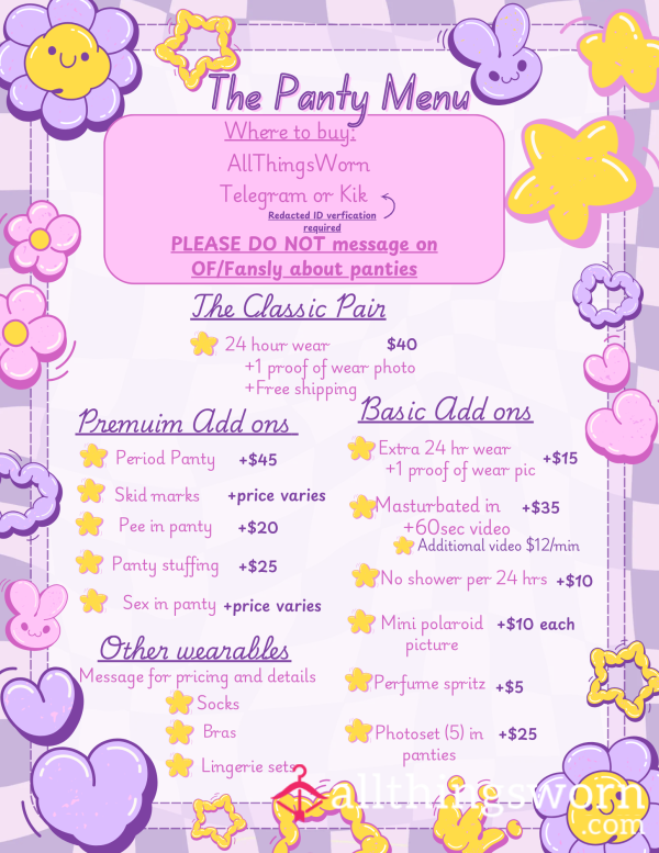 YER GIRL HAS ALOT OF OLD PANTIES TO SEND TO A NEW HOME! Purchase includes photo in panties...