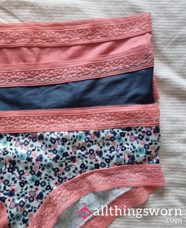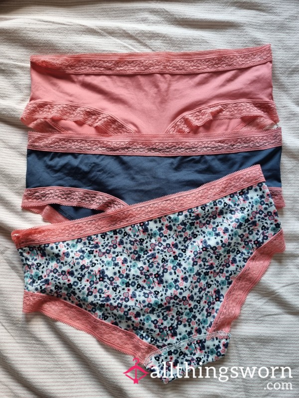 P3: Flor*l Selection Of Soft Touch Panties, Lace Edged