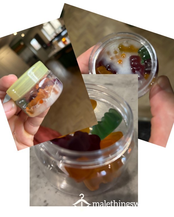 Piccolo contenitore con dentro pezzi interi di pelle dei miei piedi pronta per essere gustata.