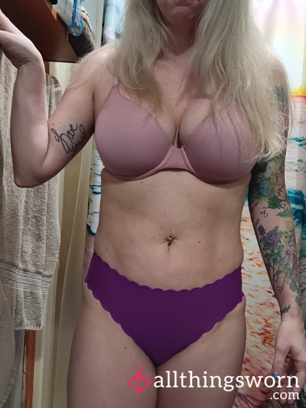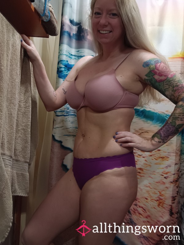 Navy and peach bra and panty set!! Comes with 48 hour wear!!...