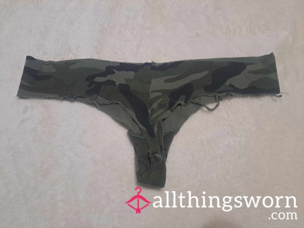 Panties Underwear Thong Cotton Green Camo Used Warned