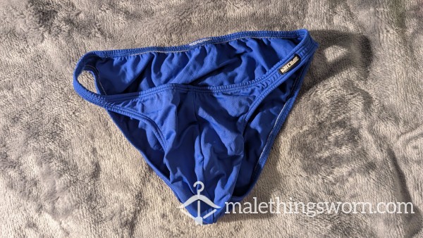 Blue tiny swimwear brief, can wear it anywhere (gym, p**l, showers) if requested