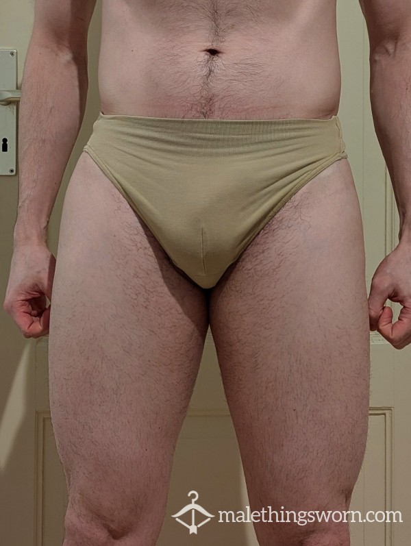 Worn hard for a full week. These white(no more) briefs went through every lift, every sweat, every lazy...
