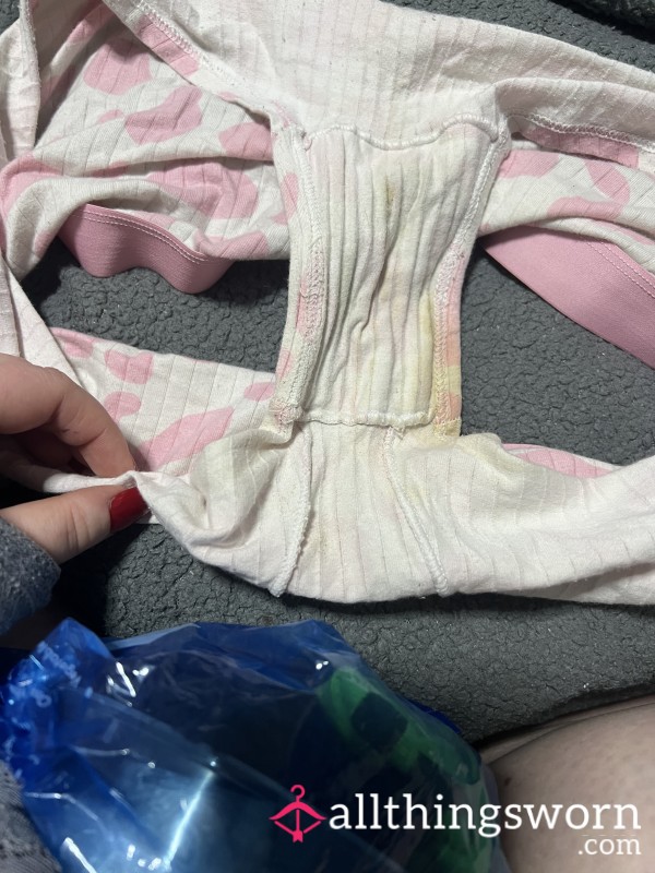 Worn 72-hours plus c*m, blue lace cheekiness panties...