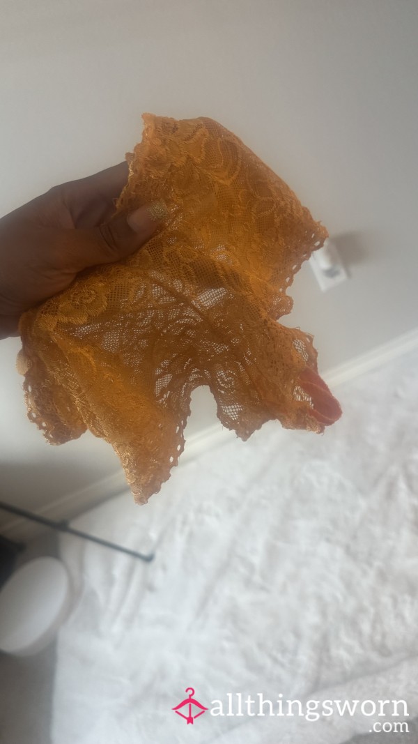Lace thong w auburn wasteband. Cute, sleek, cla**y. Comes with TWO days of wear!! Add ons encouraged. Free...