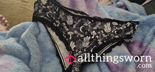 Goth boy shorts coated in my juices from a foreplay session. Size 2x