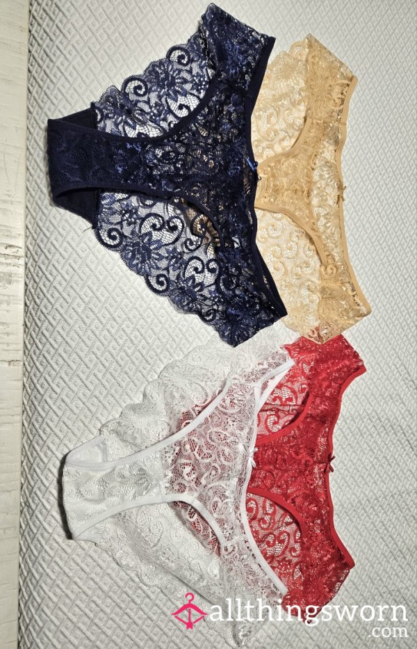 Lace panties with a cotton gusset , to soak up all my juices, available for wear. $25 includes free ground shipping within the US. 24 hour wear with Add-ons available. 1 digital proof of wear pic (each day). c*m experience my intoxicating scent. Other colors available