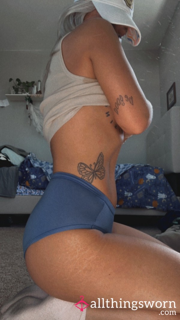 Dark blue lacy panties . Pretty. £20 48 hours wear. Inc 2/3 daily pics. Free UK postage...