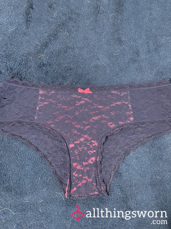 Booty hugging cheeky blue lace panties with pink lining. Worn to order. Comes with 24 hour wear doing all daily activities. Immediately sealed after wear and shipped to you in discreet plain mail bubbler. Comes with proof of wear photos in inbox.