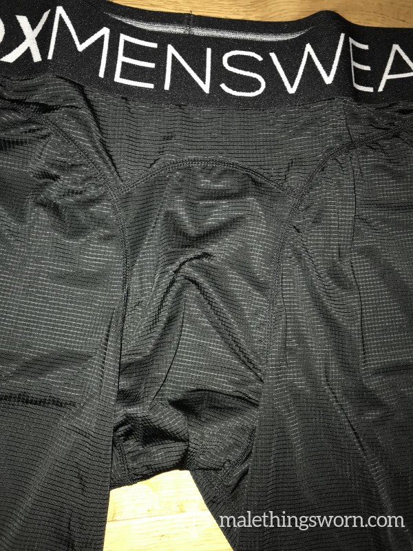 BOX Menswear Black Compression work out Shorts. Size S. Perfectly designed for working out and sports and super s**y and comfortable too! I can wear it all day and night and during workouts and playtime and they get sweaty and man scented. Will wear it for 2 days straight or longer if you want, may even have a little pre-c*m in it. If you want I can c*m in it if you want for a little extra. Just message me with requests. Free UK postage. International postage is extra