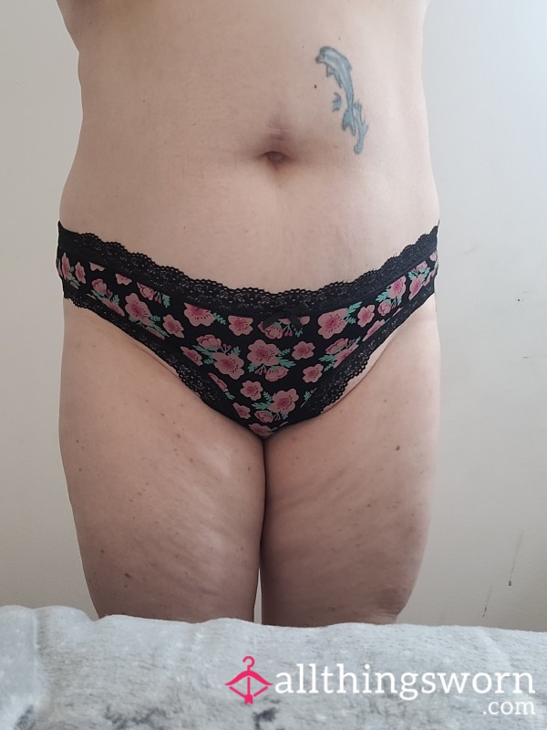Flower cotton knickers. Will be worn for 24 hours including a run or gym cla**. I can play an c*m in these or p** if that's your thing. Additional days and pictures or video can be added for an extra cost. Message me with any requests